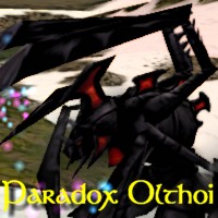 Paradox-touched Olthoi are the creations of Aerbax. Using the Tanada he controlled, Aerbax captured an olthoi queen and altered it with the combined powers of virindi and shadow. The Paradox Queen was then implanted in the Black Death Catacombs in Olthoi North where it began its new brood.